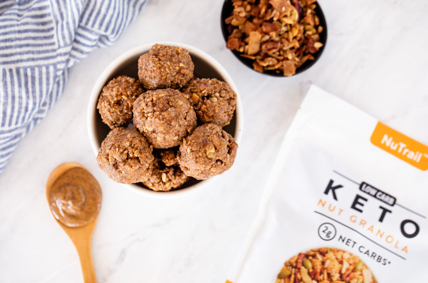 NuTrail Low-Carb Cinnamon Pecan Nut Granola adds warming spiced flavor to these energy bites without a long list of ingredients. In fact, these treats come together in about 10 minutes with 4 simple ingredients.