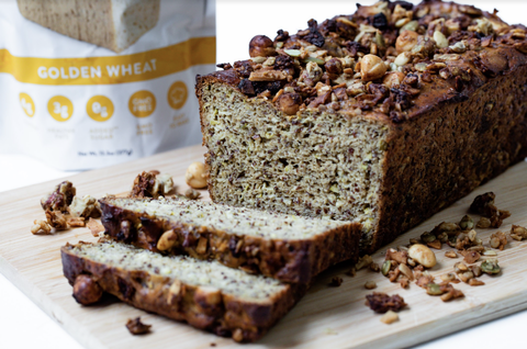 If you like a hint of sweetness and crunch, we love decorating the top of the loaf with a sprinkle of NuTrail granola. The Vanilla Strawberry flavor is especially nice and adds flavor and texture to this loaf.